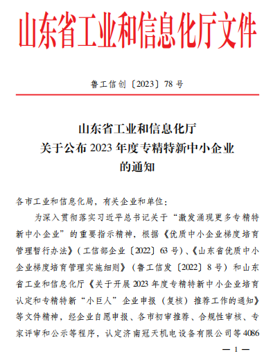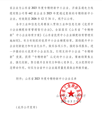 2023年5月9日,山東省工業(yè)和信息化廳公布了《關(guān)于2023山東省“專精特新”中小企業(yè)名單的通知》,經(jīng)企業(yè)申報(bào)、市區(qū)審核推薦、專家評(píng)審等程序,淄博奧固特科技有限公司憑借優(yōu)越的綜合管理策略和高效創(chuàng)新能力,成功獲評(píng)山東省“專精特新”中小企業(yè)稱號(hào)。